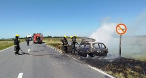 Incendio vehicular total en la Ruta 5: fuego en un automóvil...