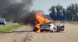 Incendio de un automóvil en Ruta 5: el conductor resultó ileso