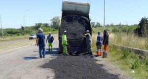 Vialidad Provincial realiza trabajos de bacheo en el puente de Ruta...