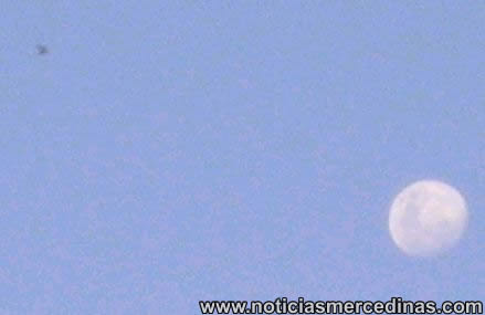 05/12/06 Nuevamente el Parque Municipal Independencia de Mercedes es escenario de episodios que tienen relación con la temática OVNI. A la aparición de una huella circular hace ya unos años en la pista de ciclismo, se suma ahora la observación de un objeto con forma de platillo que se dirigía de norte a sur y fue fotografiado el sábado por la tarde. La ciudad había sido objeto de las miradas de quienes se dedican a la investigación OVNI luego de que unos policías denunciaran días pasados a ufólogos haber sido testigos del pasaje de un aparato volante en uno de sus rondines. La fotografía que acompaña esta nota fue tomada el sábado al atardecer y este extraño objeto que como se ve parece tener una composición en su estructura de alguna aleación, ya que emitía brillos, según los que lo vieron, se dejó ver casi inmóvil en el cielo por un instante, y luego se alejó raudamente hacia el sur. La observación de este objeto se dio desde el parque nuevo en dirección a la ruta 41, cuyo trayecto entre Mercedes y Giles es -según investigadores de este fenómeno locales- una de las zonas de mayores avistamientos. Huella