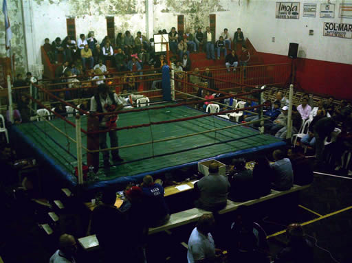 21/04/07 Luego de tantas idas y venidas, más las polémicas entre la Comisión Municipal y la Escuela Cosentino, en la noche del viernes y la madrugada del sábado se concretó en el gimnasio “Rolo” Cardinal del Club Quilmes la esperada velada boxística. Por sobre todo, a pesar de iniciarse con algo de demora, la organización fue buena estando bien delimitado cada uno de los sectores para el público. En el centro del gimnasio se destacó un ring traído desde Saladillo, quizás con un piso mucho más acorde para los que estarían cerrando el festival: cuatro boxeadores profesionales. Dentro de los combates amateurs los primeros en subir al cuadrilátero fueron Gastón Suárez (La Plata) y Mauricio García (Morón) en la categoría Mosca, en tres rounds un fallo unánime arrojó un empatando. Escasa técnica de ambos, se dedicaron a estudiarse sin llegar a hacer estallar a los más de 200 espectadores presentes.
