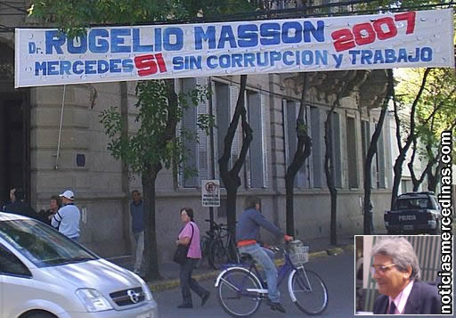 09/04/07 ¿JUEZ CANDIDATO A INTENDENTE? El cartel apareció esta mañana y llamó la atención frente a los Tribunales, que hoy no lucieron un aspecto de mucho trajín debido al paro de los Judiciales. El pasacalle habla de la candidatura del doctor Rogelio Massón y algunos pensaron en la posibilidad de que octubre vea al conocido juez como candidato por la intendencia de la ciudad. Todo puede ser.