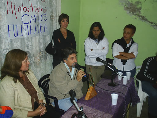 10/04/07 NUEVO CENTRO: Este lunes por la noche quedó inaugurado un nuevo centro de alfabetización dependiente del ministerio de Cultura, Educación, Ciencia y Tecnología de la Nación. Lleva el nombre de "Carlos Fuentealba" y funcionará en la sede de la sociedad de fomento del barrio Almafuerte y contará con más de 15 alumnos. Participaron del acto el director de Cultura y Educación, Fernando Pachiani; la coordinadora de los centros Ana Valerga y representantes del Consejo Escolar de Mercedes como son Miriam Fiori y María de los Angeles Benítez (foto). Anunciaron que en los próximos días esa barriada inaugurará una biblioteca cedida por el profesor Pedro Pasquinelli y el monumento de Almafuerte.