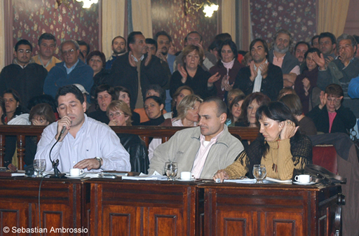 14/05/07 Con el anuncio nominal de quienes votaron por la negativa, se aprobó una resolución para dirigirse al Ejecutivo para instalarlo a elaborar un proyecto de ordenanza para un aumento para la categoría 1 de los trabajadores municipales que llegue a 915 pesos con el aumento incluido, y votaron por la afirmativa los concejales de todos los bloques excepto el Partido Justicialista Frente Para la Victoria. El despacho de mayoría obtuvo la negación de los oficialistas, pero el apoyo de todos los demás, que recibieron el aplauso de unos 250 personas que se habían congregado y vivaron la posibilidad cercana del aumento con este criterio marcado desde el Legislativo.