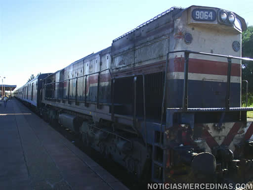 16/05/07 Esta mañana en la estación del FFCC “Domingo Faustino Sarmiento” de Mercedes se vivió una situación particular, con el arribo de vuelta del rápido que iba a la ciudad de Buenos Aires parando en Luján y Haedo, pero al que se le incendió la máquina a la altura del peaje de Olivera y desde la estación de Mercedes partió una máquina en auxilio para remolcar toda la formación del local que saldría a las 11.15 pero se demoró y partió poco después de las 12.30, con el pasaje compuesto por quienes se volvieron en el rápido y los que iban en el local. Debieron intervenir los bomberos para sofocar las llamas.