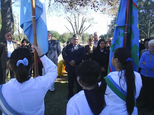 25/05/07 Comenzaron los actos oficiales del 25 de mayo Pasadas las 9 horas las autoridades presentes realizaron el izamiento de la bandera argentina en el mástil de 29 y 24. Luego el vicario general de la arquidiócesis, monseñor Bruno, ofició el Te-Deum. Hubo ofrendas florales. Jorge Bruno ofició el Te Deum en la Catedral