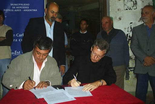03/05/07 Firmaron contrato para el ensanche de calle 10 Rubricaron el intendente y el presidente de la empresa SAARA construcciones e inmobiliaria. En 10 y 53 Selva prometió que iniciarán las obras para que llegue el agua corriente al barrio. Y destacó los nuevos SUM. Carlos Selva y Ricardo Ledo firmaron el contrato.