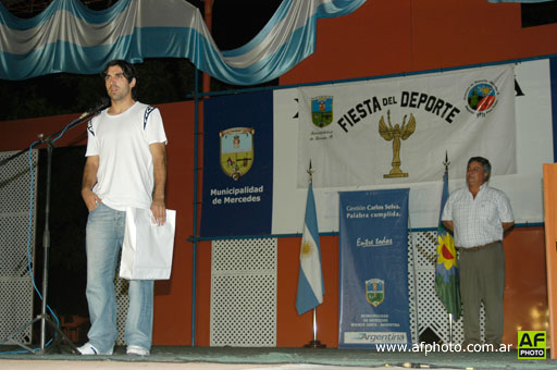 18/12/08 La cálida noche del miércoles 17 fue el momento para la realización de la cuarta edición de la Fiesta del Deporte. En el Polideportivo Abierto Martín Rodríguez, más de 100 deportistas y otros tantos familiares y allegados a diferentes disciplinas no quisieron perderse el evento. Como sucediera años anteriores todo estuvo organizado por la Dirección de Deportes, que contó con la colaboración de un nutrido grupo de periodistas deportivos de diferentes medios de la ciudad. Fue entonces que, pasadas las 22, el locutor Diego Marú le dio la bienvenida a los presentes, acto seguido se proyectó un video de los deportistas que iban a ser premiados tras su destacada participación en la temporada 2008. Lo que siguió fueron las palabras del periodista Néstor Dova, en representación de los medios. El conductor de “Actualidad Deportiva” se dirigió a los presentes remarcando lo importante que es la práctica del deporte. Por su parte, el intendente Carlos Selva resaltó la tarea de la Dirección de Deportes y el apoyo que puede existir desde el municipio para que la actividad pueda salir adelante. Sin pausa de por medio el primer reconocimiento especial fue para el futbolista Emmanuel Culio, recién llegado de Rumania y siendo el mejor extranjero de la Liga no estuvo ausente en la Fiesta del Deporte.